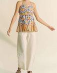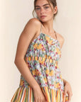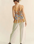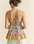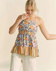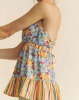 Davi & Dani Floral Smocked Sleeveless Ruffle Back Tie Top