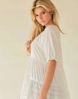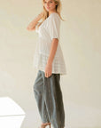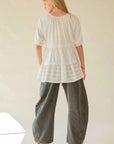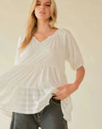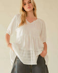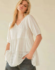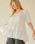 Davi & Dani Ruffled Flared Short Sleeve V Neck Blouse