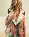 Double Take Full Size Snap Down Plaid Vest Coat with Pockets