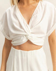 HYFVE Twisted Front Short Sleeve Top and Wide Leg Pants Set