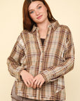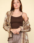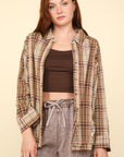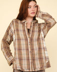 The Contrast Plaid Detail Casual Shirt Top is ideal for transitioning into early fall. This comfy button-down shirt features a blend of plaid details and raw edge accents, adding a touch of casual chic to your wardrobe. Its oversized fit and long sleeves ensure maximum comfort and a relaxed silhouette, perfect for cooler weather. The contrast plaid adds a pop of pattern, making this shirt a standout piece for autumn. Whether layered or worn on its own, it's a versatile choice for effortless style.