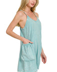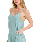 Zenana Acid Crinkle Washed Spaghetti Strap Romper