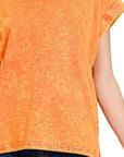 Zenana Crinkle Washed Round Neck Folded Short Sleeve Tee