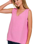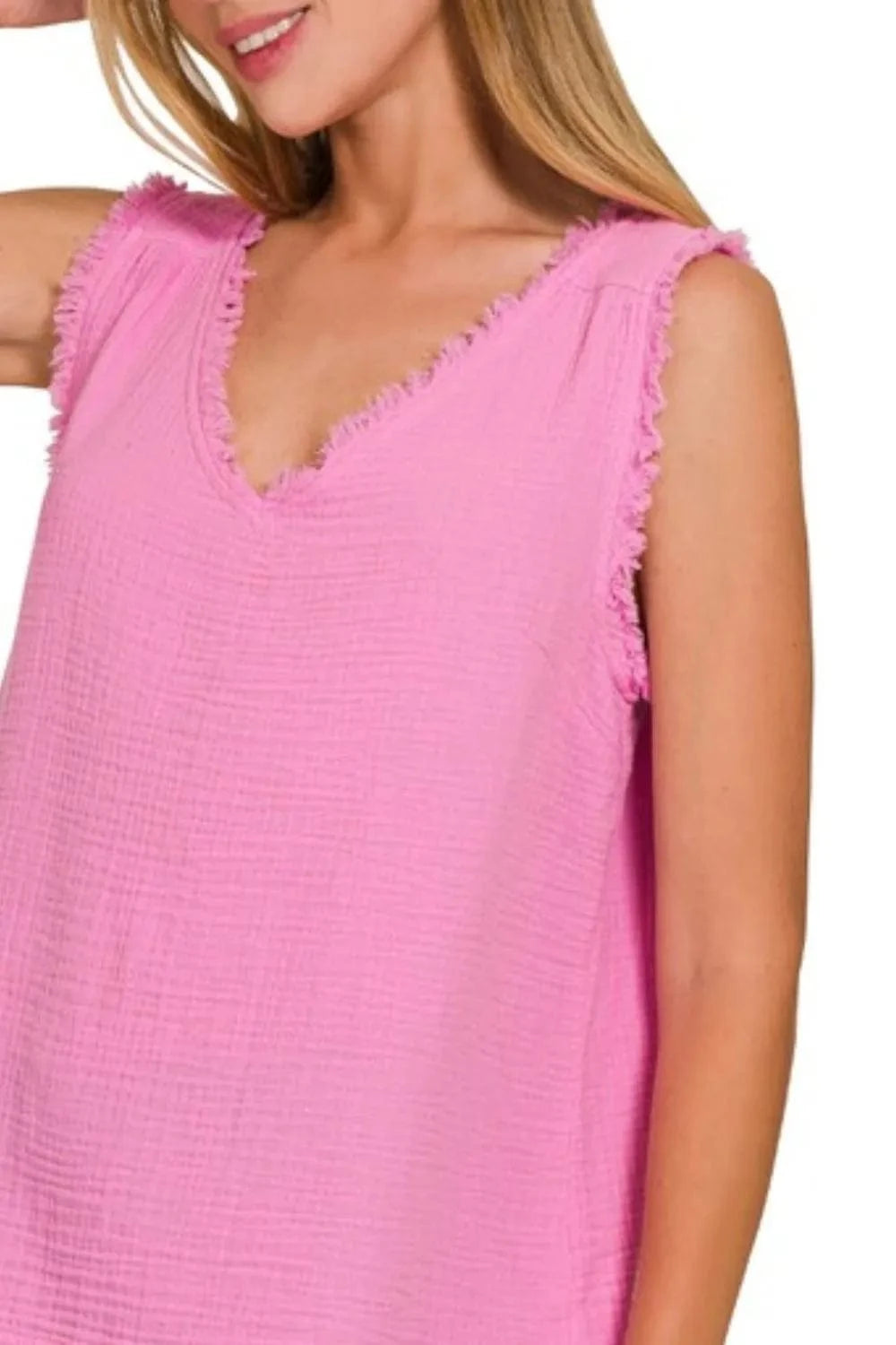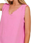 Zenana Double Gauze Raw Edge V-Neck Tank
