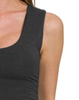 This premium ribbed tank top features a classic scoop neckline and cropped silhouette, crafted from a comfortable stretch blend fabric that moves with your body. The sleek black colorway offers endless styling possibilities, while the ribbed texture adds visual interest and a slimming effect. Perfect for pairing with high-waisted jeans, skirts, or layering under jackets and cardigans. The breathable, lightweight material makes it ideal for warm weather or as a versatile layering piece year-round.
