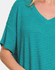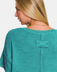 Zenana Drop Shoulder Short Sleeve Jacquard Knit Top