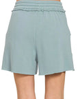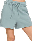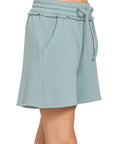 Zenana Fleece Raw Hem Shorts With Draw String