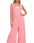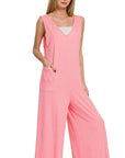 Zenana French Terry Deep V Neck Jumpsuits