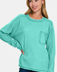 Zenana Full Size Contrast Stitching Brushed Ribbed Hacci Knit Top Plus Size