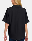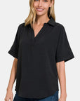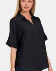 Zenana Full Size Texture Collared Neck Short Sleeve Top