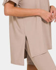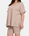 Zenana Full Size V-Neck Short Sleeve Slit T-Shirt and Shorts Set