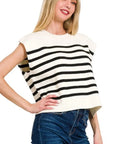 Zenana Oversized Crew Neck Stripe Sweater Vest