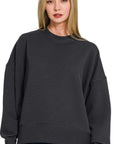 Zenana Ribbed Balloon Sleeve Sweatshirt
