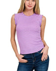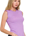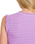 Zenana Ribbed Ruffle Trim Sleeveless Stripe Top