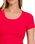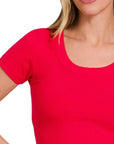 Zenana Ribbed Scoop Neck Crop Short Sleeve Top