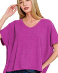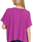 Zenana Ribbed V-Neck Short-Sleeve Knit Top