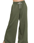 These scuba drawstring pants combine sporty style with comfort, making them a versatile addition to your wardrobe. The scuba fabric offers a modern and sleek look with its smooth texture and stretchy feel. The drawstring waist adds a casual touch and allows for a customizable fit. These pants are perfect for a laid-back yet trendy outfit, whether you're running errands or lounging at home. Stay stylish and comfortable with these scuba drawstring pants!