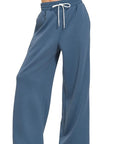 These scuba drawstring pants combine sporty style with comfort, making them a versatile addition to your wardrobe. The scuba fabric offers a modern and sleek look with its smooth texture and stretchy feel. The drawstring waist adds a casual touch and allows for a customizable fit. These pants are perfect for a laid-back yet trendy outfit, whether you're running errands or lounging at home. Stay stylish and comfortable with these scuba drawstring pants!