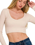 Zenana Seamless Fitted Rib V-neck Long Sleeve Crop Top