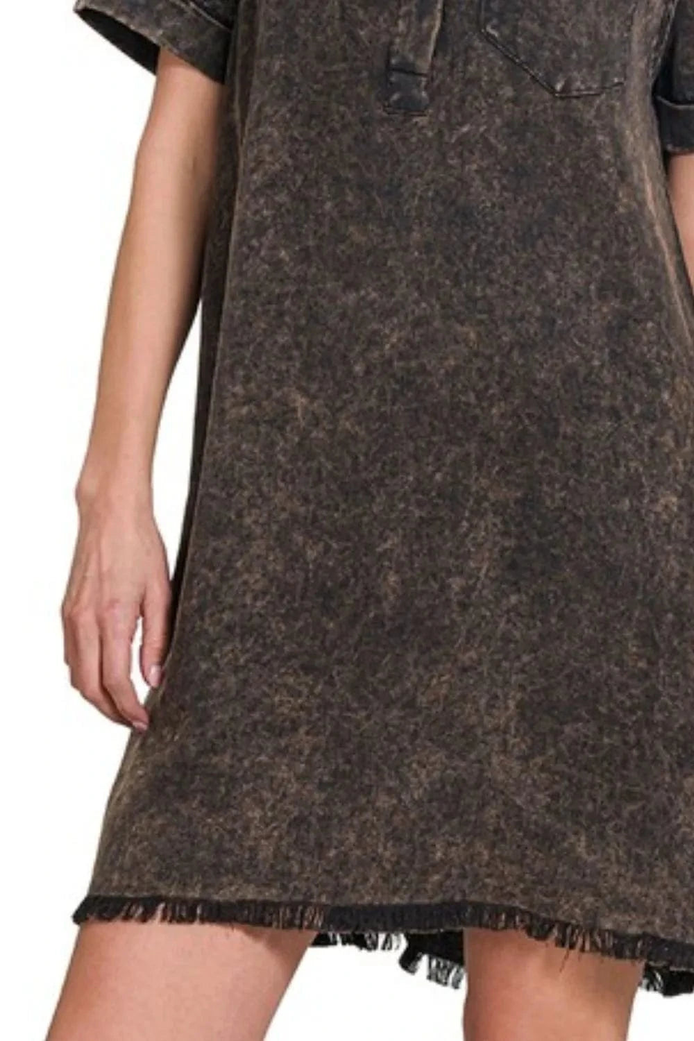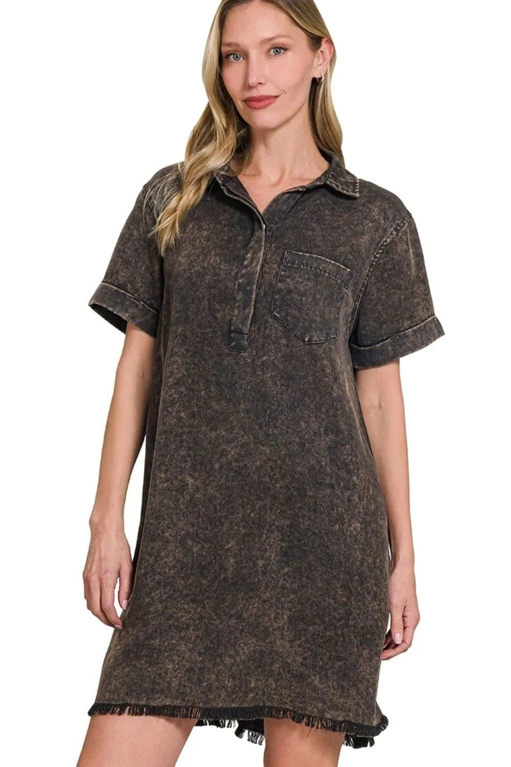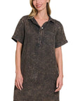 Zenana Tencel Mineral Washed Collared Shirts Dress