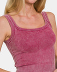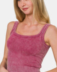 Zenana Washed Ribbed Scoop Neck Wide Strap Tank