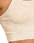 Zenana Washed Ribbed Seamless Double Strap Brami