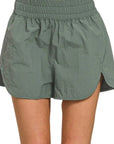 Zenana Windbreaker Smocked Waistband Running Shorts