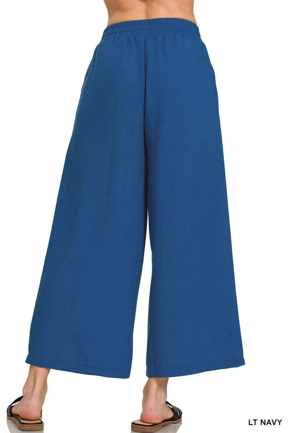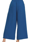 Zenana Woven Crepe Elastic Band Waist Cropped Pants