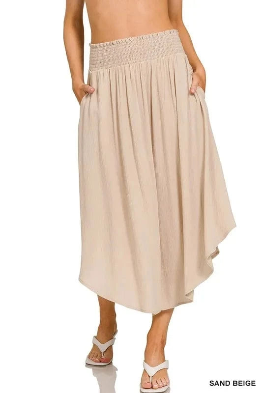 Zenana Woven Crinkle Smocked Waist Maxi Skirt W Pockets