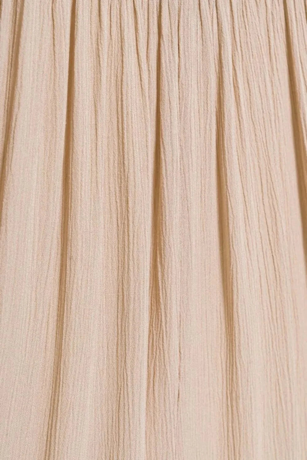 The Woven Crinkle Smocked Waist Maxi Skirt with Pockets is a versatile and stylish piece. Crafted from a woven crinkle fabric, it offers a breezy and textured look. The smocked waist provides a comfortable and flattering fit, while the addition of pockets adds a practical element. Perfect for effortless style, this maxi skirt can be dressed up or down for any occasion.